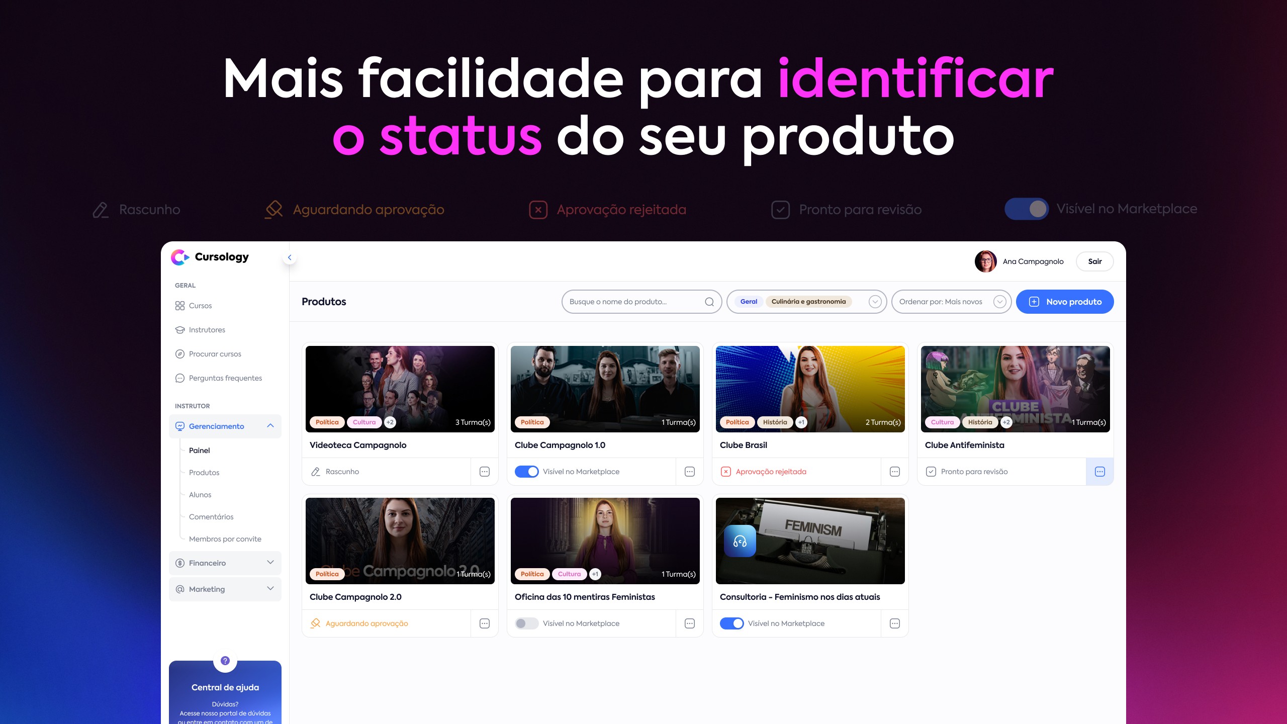 Apresentamos o painel Comentários, que permite aos instrutores da Cursology gerenciar de forma eficiente e organizada os comentários recebidos em suas aulas. Estamos sempre buscando maneiras de melhorar a experiência na Cursology e esperamos que essa atualização traga mais praticidade e eficiência para o seu dia a dia, garantindo uma comunicação mais eficaz entre os alunos e mais controle para os instrutores sobre a interação em suas aulas.