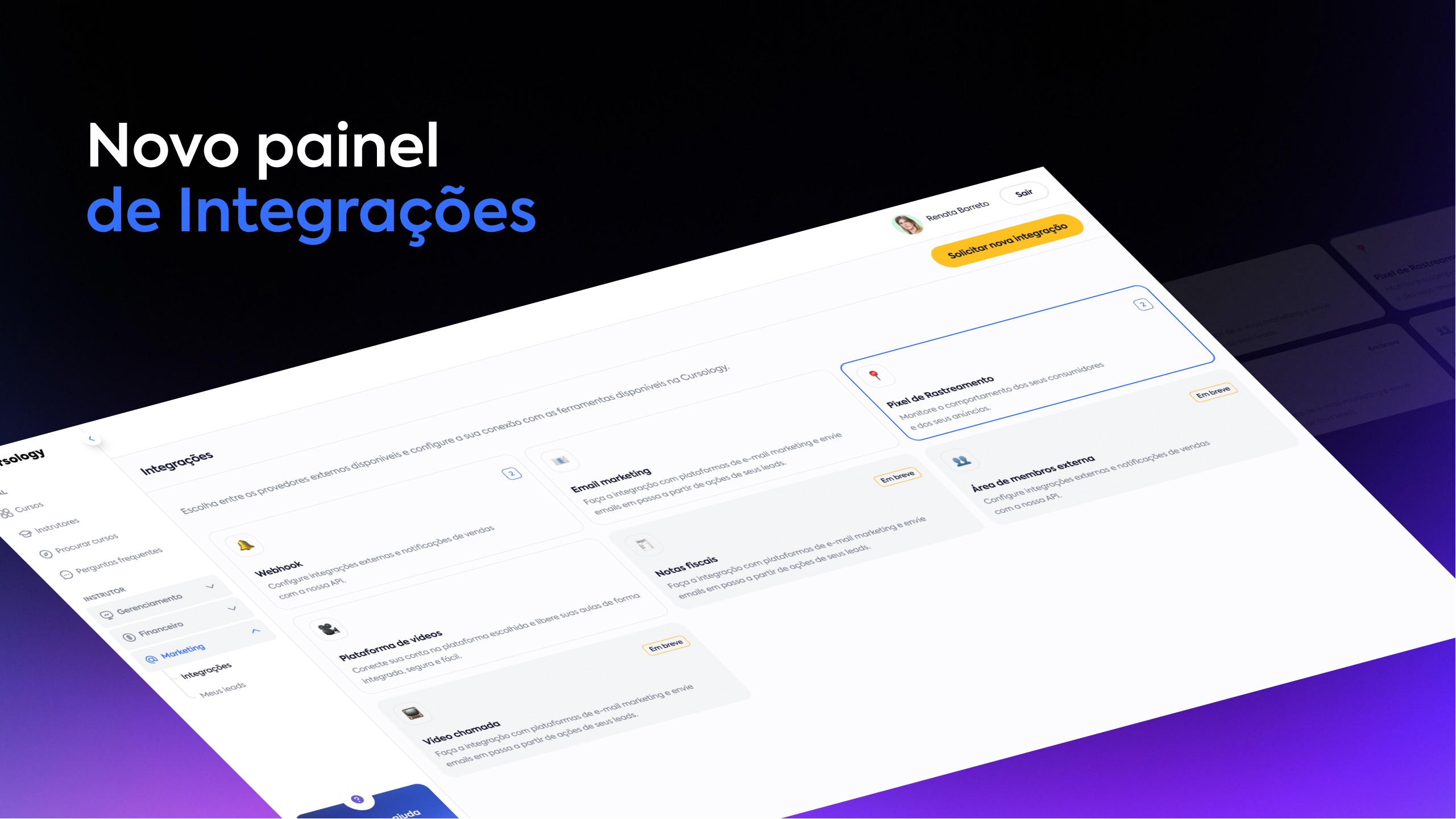 Os perfis dos usuários na plataforma Cursology têm uma nova capa padrão, trazendo um visual mais moderno e dinâmico para a página do instrutor e do aluno.